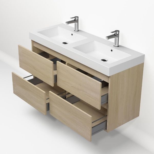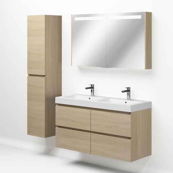 | Bellanti Elena/Esta-Q badmeubel 120x46 4 softclose laden eiken licht greeploos quartz wastafel dubbel mat wit met 2 kraangaten |