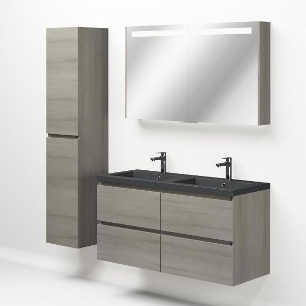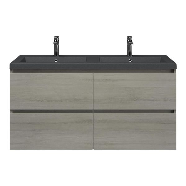 | Bellanti Elena/Esta-Q badmeubel 120x46 4 softclose laden eiken licht grijs greeploos quartz wastafel dubbel mat grijs met 2 kraangaten |