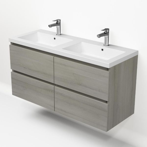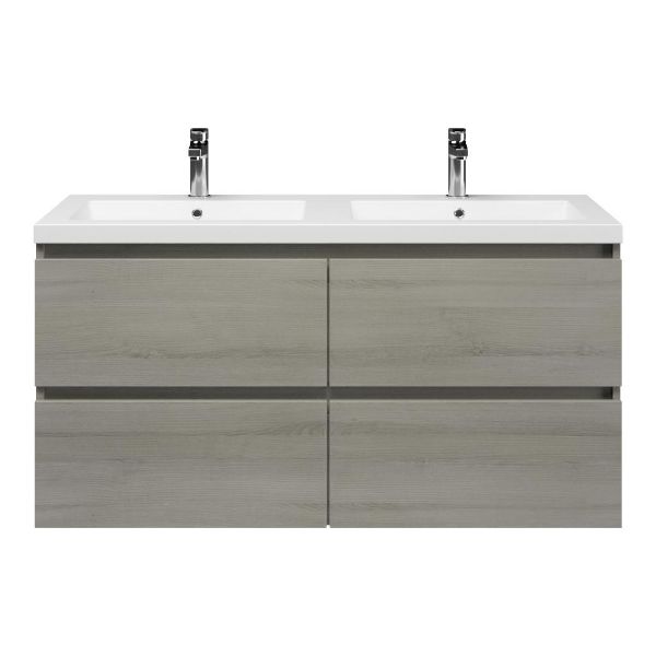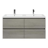 | | Bellanti Elena/Esta-Q badmeubel 120x46 4 softclose laden eiken licht grijs greeploos quartz wastafel dubbel mat wit met 2 kraangaten |