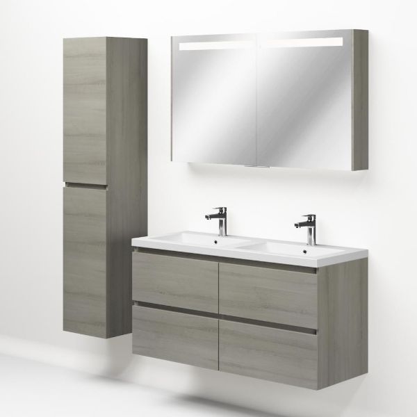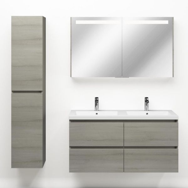 | Bellanti Elena/Esta-Q badmeubel 120x46 4 softclose laden eiken licht grijs greeploos quartz wastafel dubbel mat wit met 2 kraangaten |