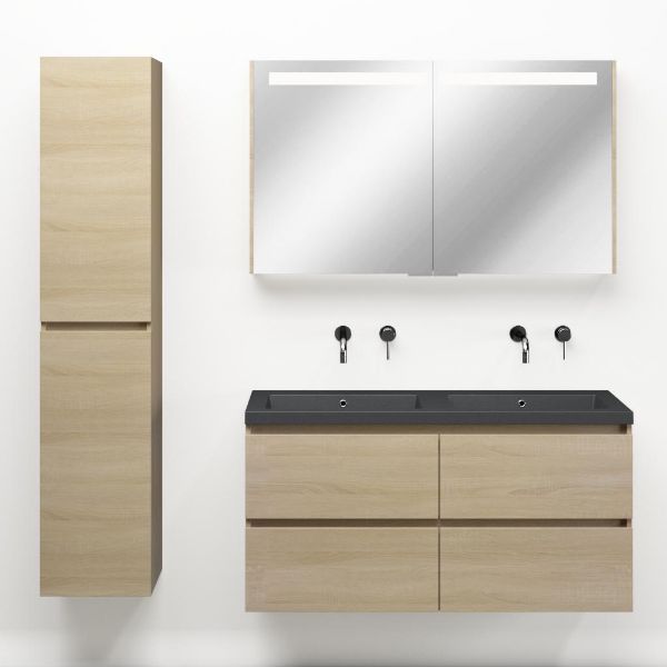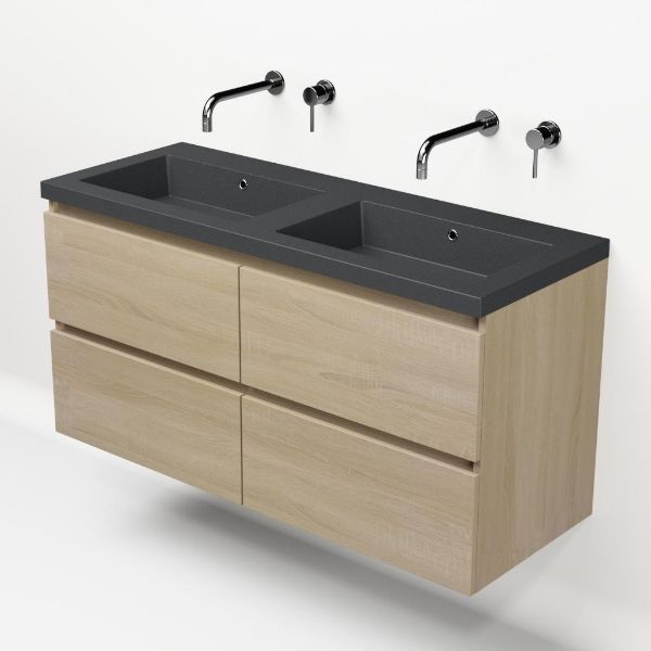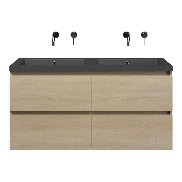 Bellanti Elena/Esta-Q badmeubel 120x46 4 softclose laden eiken licht greeploos quartz wastafel dubbel mat grijs zonder kraangaten