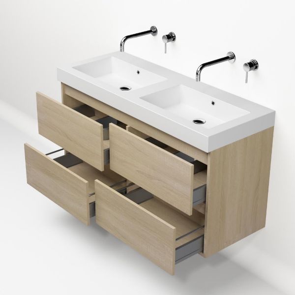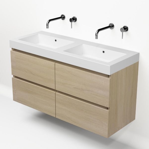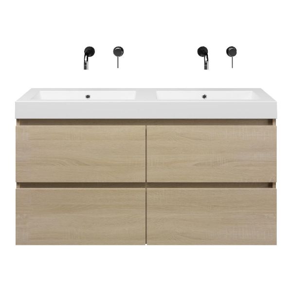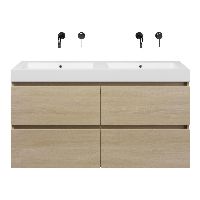 | | Bellanti Elena/Esta-Q badmeubel 120x46 4 softclose laden eiken licht greeploos quartz wastafel dubbel mat wit zonder kraangaten |