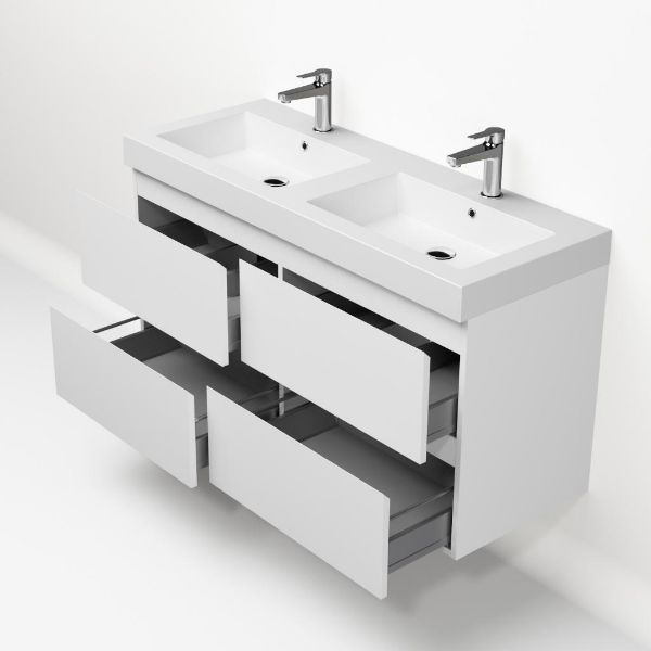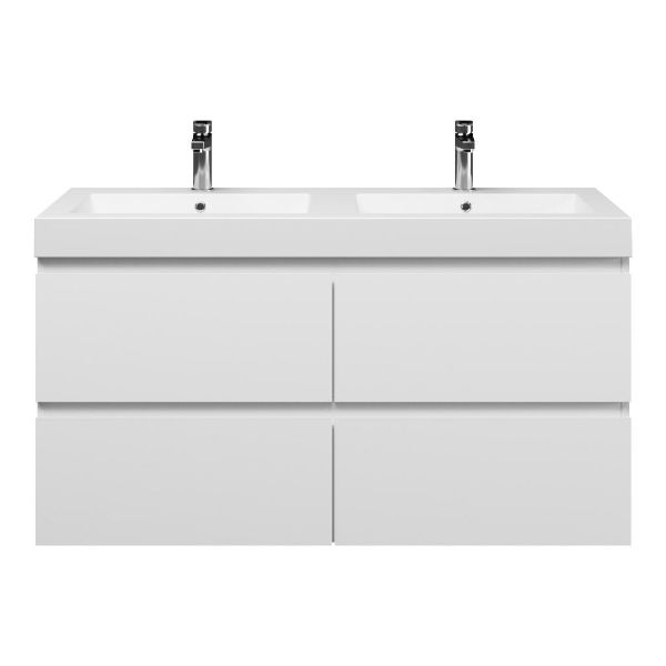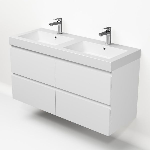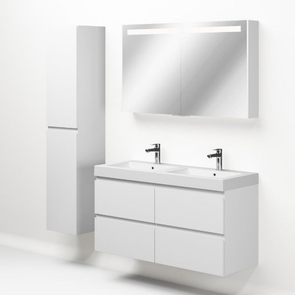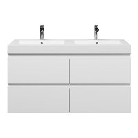 | Bellanti Gisella/Esta-Q badmeubel 120x46 4 softclose laden wit mat greeploos quartz wastafel dubbel mat wit met 2 kraangaten |