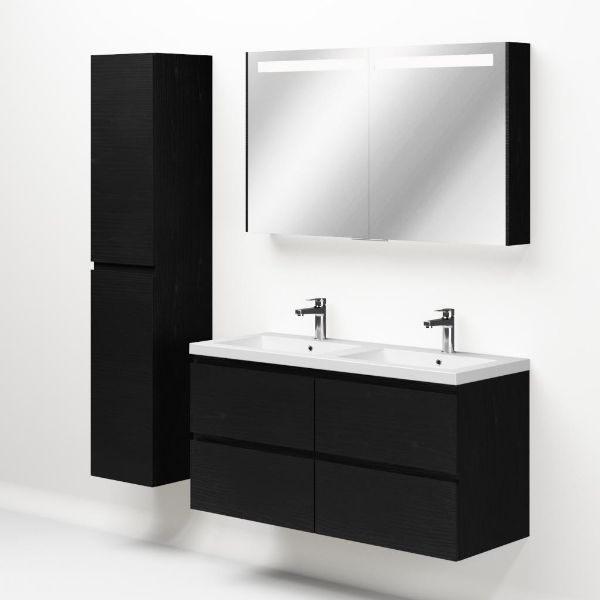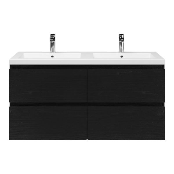 | | Bellanti Gisella/Esta-Q badmeubel 120x46 4 softclose laden zwart mat eiken greeploos quartz wastafel dubbel mat wit met 2 kraangaten |