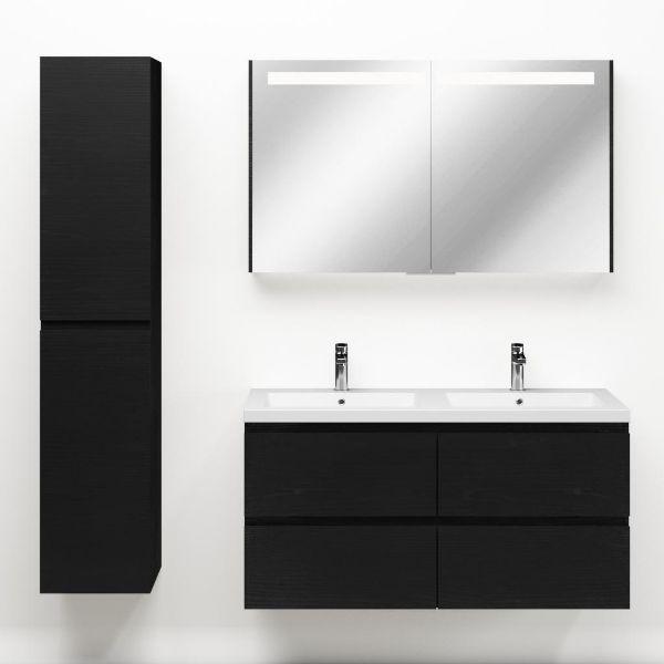 | Bellanti Gisella/Esta-Q badmeubel 120x46 4 softclose laden zwart mat eiken greeploos quartz wastafel dubbel mat wit met 2 kraangaten |