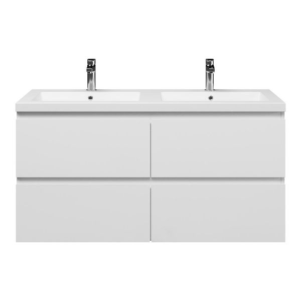 | | Bellanti Gisella/Esta-Q badmeubel 120x46 4 softclose laden wit hoogglans greeploos quartz wastafel dubbel mat wit met 2 kraangaten |