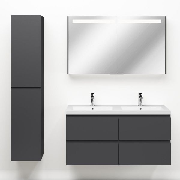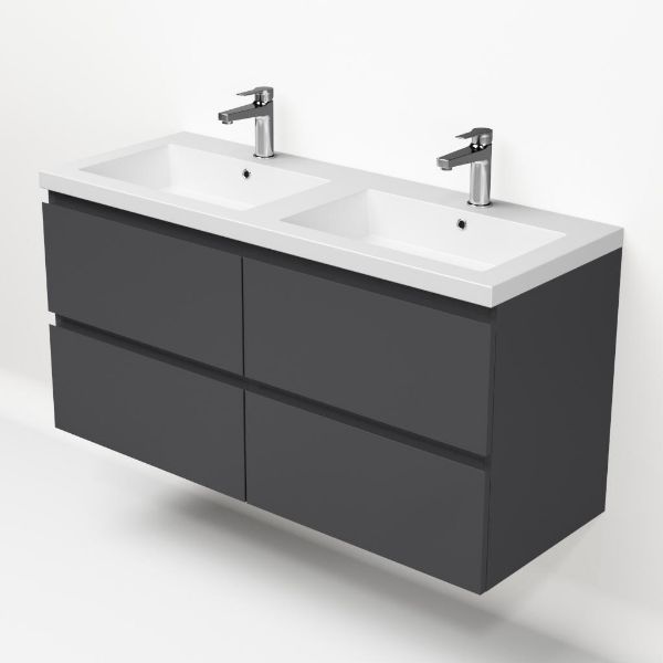 | Bellanti Gisella/Esta-Q badmeubel 120x46 4 softclose laden antraciet mat greeploos quartz wastafel dubbel mat wit met 2 kraangaten |