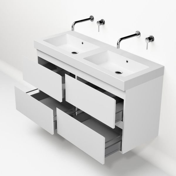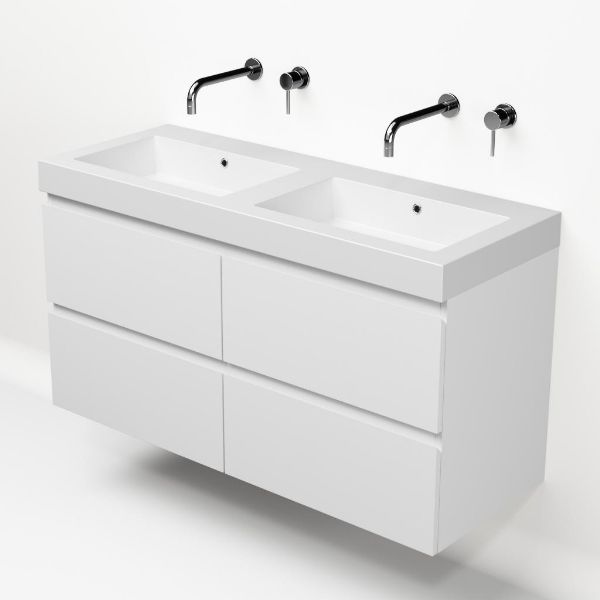 | | Bellanti Gisella/Esta-Q badmeubel 120x46 4 softclose laden wit mat greeploos quartz wastafel dubbel mat wit zonder kraangaten |