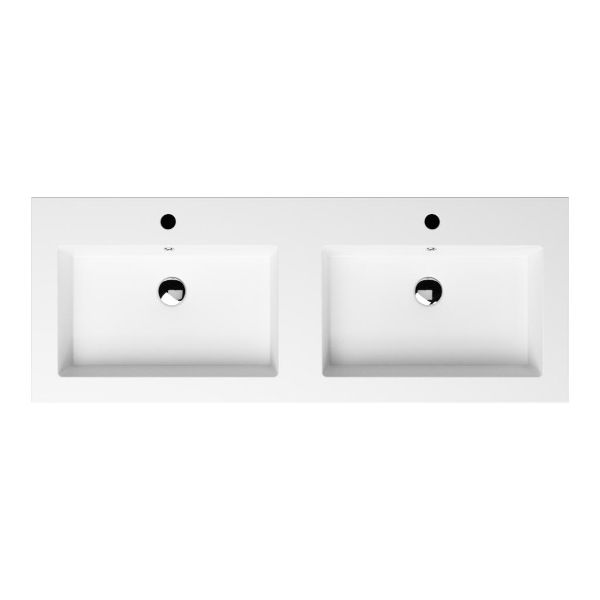 Greeploos badkamermeubel in de kleur wit mat is 120 cm breed. De wastafel is vervaardig in quartz en heeft de kleur wit mat quartz. Dit badkamermeubel met deze wastafel is leverbaar tussen de 60 cm t/m 160 cm