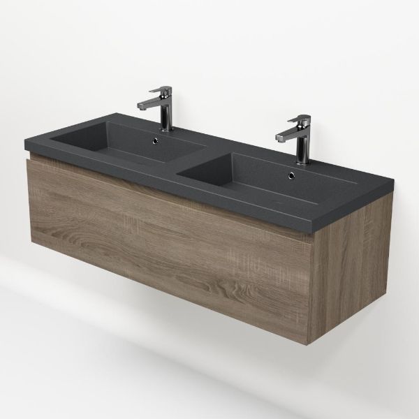 | Bellanti Solo /Esta-Q badmeubel 120x46 1 softclose lade eiken donker greeploos quartz wastafel dubbel mat grijs met 2 kraangaten |