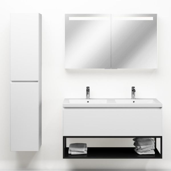 | Bellanti Solo/Tela/Esta-Q badmeubel 120x46 1 softclose lade wit mat greeploos quartz wastafel dubbel mat wit met 2 kraangaten met mat zwart metalen frame |