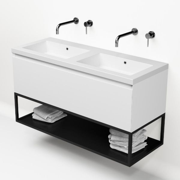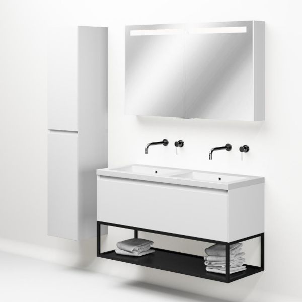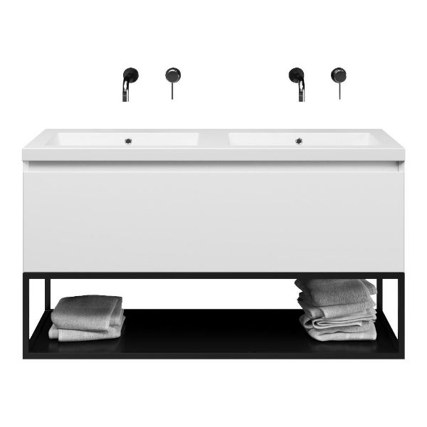 | | Bellanti Solo/Tela/Esta-Q badmeubel 120x46 1 softclose lade wit mat greeploos wastafel dubbel mat wit zonder kraangaten met mat zwart metalen frame |