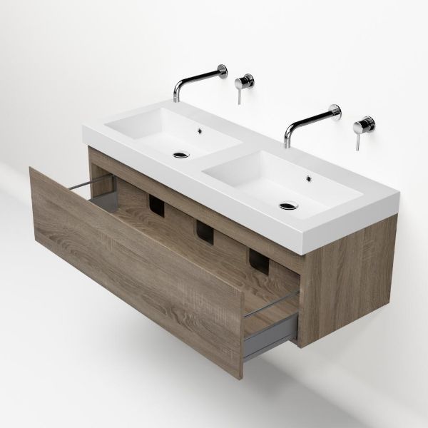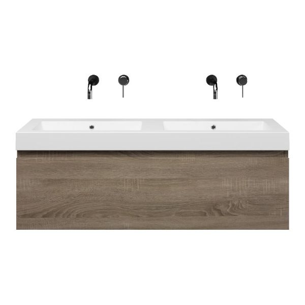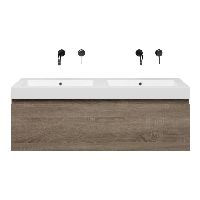 | | Bellanti Solo /Esta-Q badmeubel 120x46 1 softclose lade eiken donker greeploos quartz wastafel dubbel mat wit zonder kraangaten |