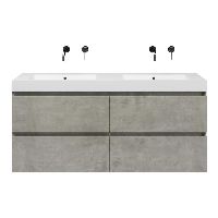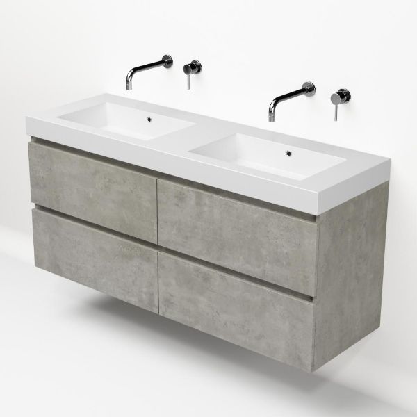 Bellanti Elena/Esta-Q badmeubel 140x46 4 softclose laden beton greeploos quartz wastafel dubbel mat wit zonder kraangaten