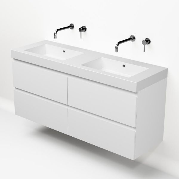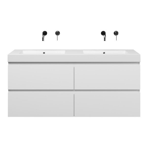 | | Bellanti Gisella/Esta-Q badmeubel 140x46 4 softclose laden wit mat greeploos quartz wastafel dubbel mat wit zonder kraangaten |