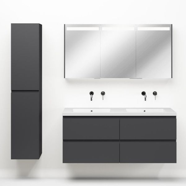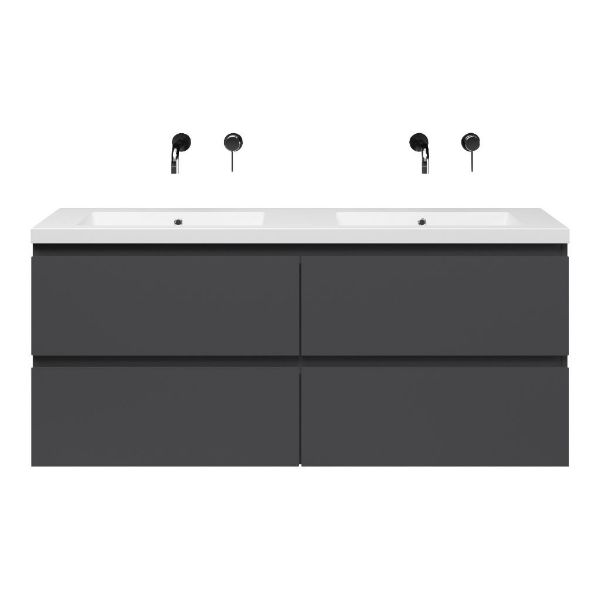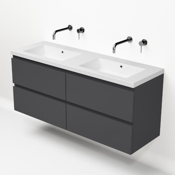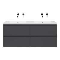 | | Bellanti Gisella/Esta-Q badmeubel 140x46 4 softclose laden antraciet mat greeploos quartz wastafel dubbel mat wit zonder kraangaten |