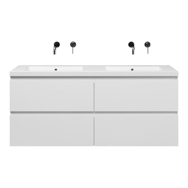 | | Bellanti Gisella/Esta-Q badmeubel 140x46 4 softclose laden wit hoogglans greeploos quartz wastafel dubbel mat wit zonder kraangaten |