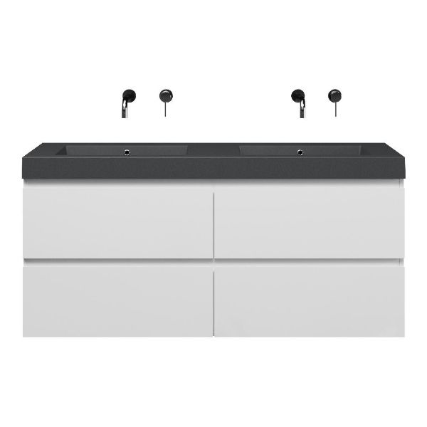 | | Bellanti Gisella/Esta-Q badmeubel 140x46 4 softclose laden wit hoogglans greeploos quartz wastafel dubbel mat grijs zonder kraangaten |