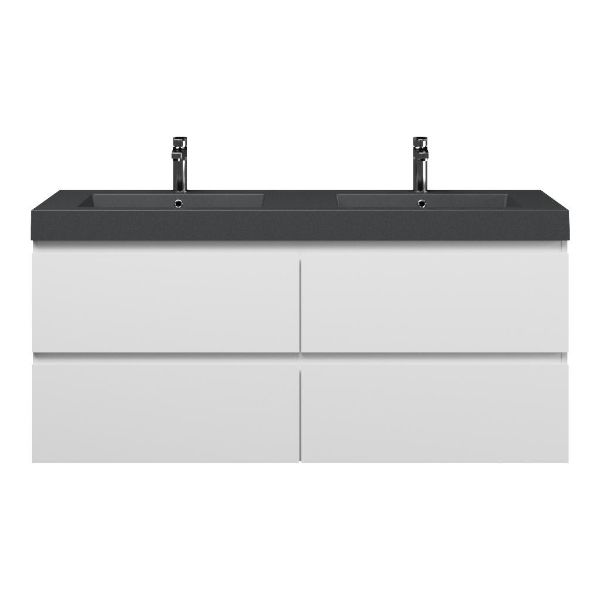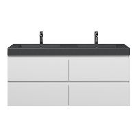 | | Bellanti Gisella/Esta-Q badmeubel 140x46 4 softclose laden wit mat greeploos polystone wastafel dubbel mat grijs met 2 kraangaten |