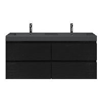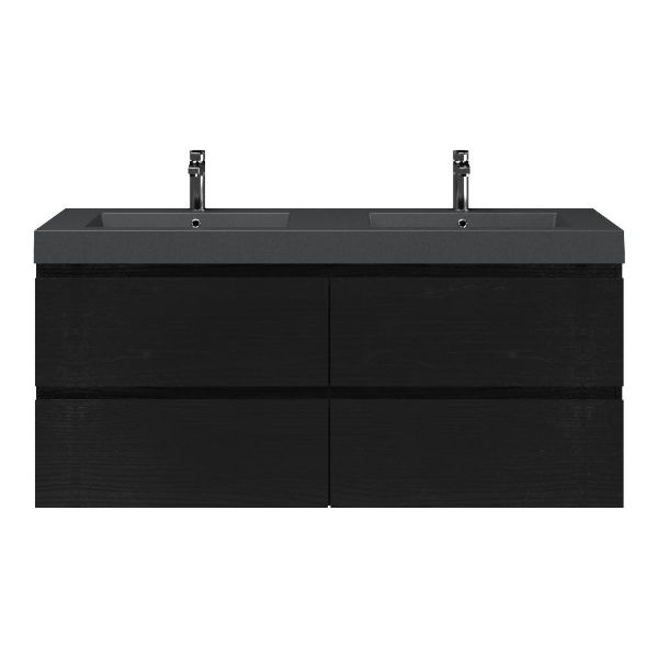 | Bellanti Gisella/Esta-Q badmeubel 140x46 4 softclose laden zwart mat eiken greeploos polystone wastafel dubbel mat grijs met 2 kraangaten |