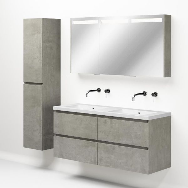 | | Bellanti Elena/Esta-Q badmeubel 140x46 4 softclose laden beton greeploos quartz wastafel dubbel mat wit zonder kraangaten |