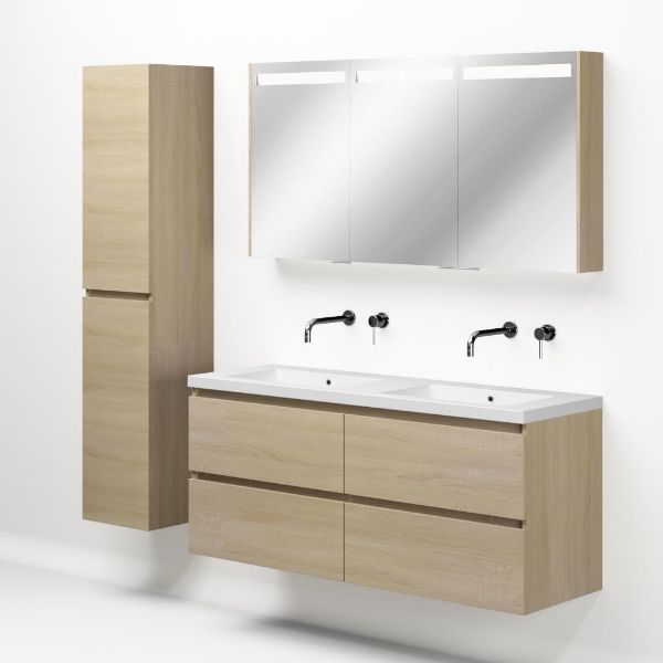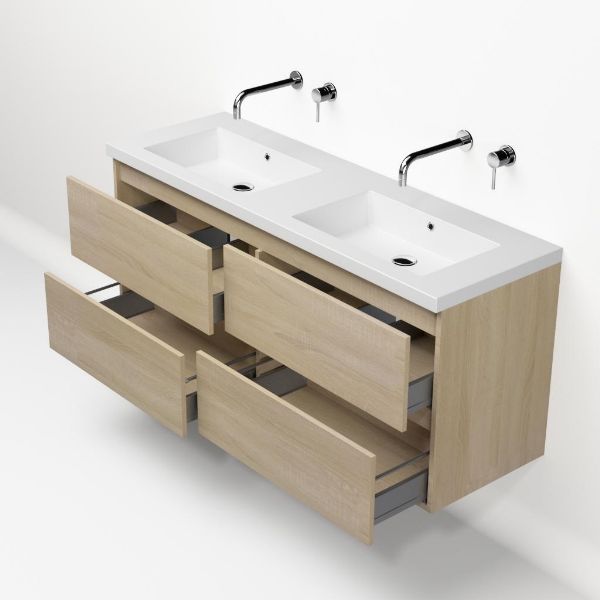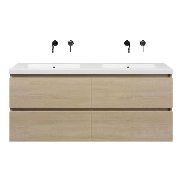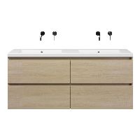 | | Bellanti Elena/Esta-Q badmeubel 140x46 4 softclose laden licht eiken greeploos quartz wastafel dubbel mat wit zonder kraangaten |