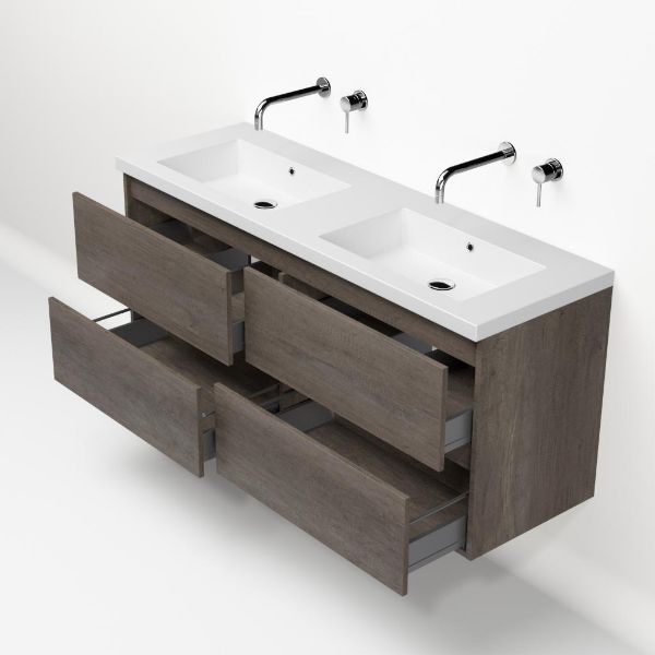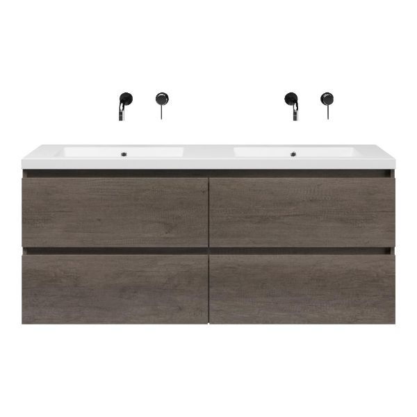 Bellanti Elena/Esta-Q badmeubel 140x46 4 softclose laden olm donker grijs greeploos quartz wastafel dubbel mat wit zonder kraangaten