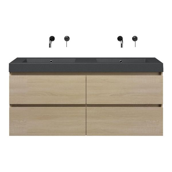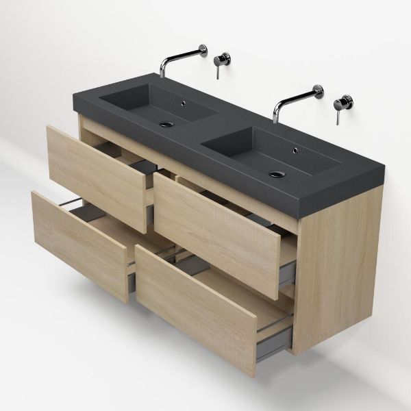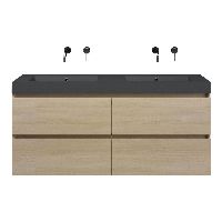 Bellanti Elena/Esta-Q badmeubel 140x46 4 softclose laden licht eiken greeploos quartz wastafel dubbel mat grijs zonder kraangaten