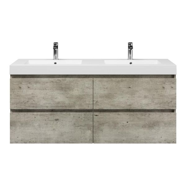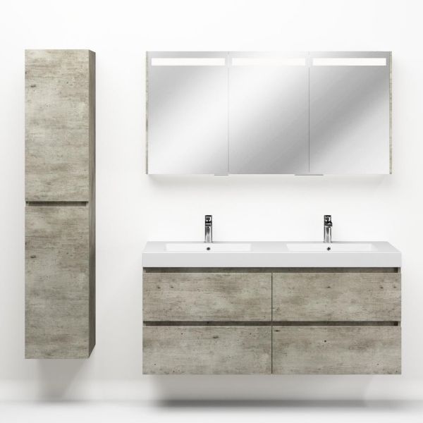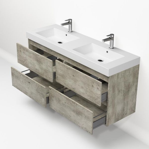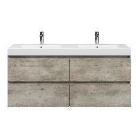 Bellanti Elena/Esta-Q badmeubel 140x46 4 softclose laden steigerhout licht grijs greeploos polystone wastafel dubbel mat wit met 2 kraangaten