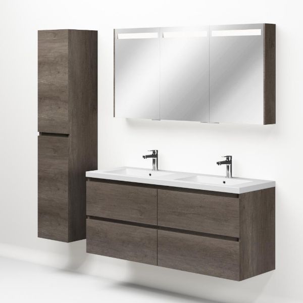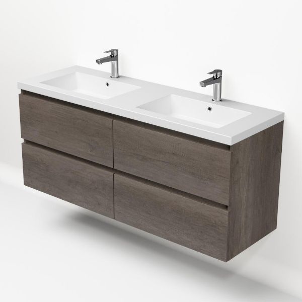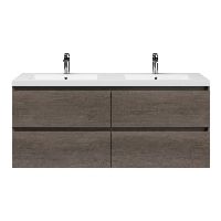 Greeploos badkamermeubel in de kleur olm donker grijs is 140 cm breed. De wastafel is vervaardig in quartz en heeft de kleur wit mat. Dit badkamermeubel met deze wastafel is leverbaar tussen de 60 cm t/m 200 cm