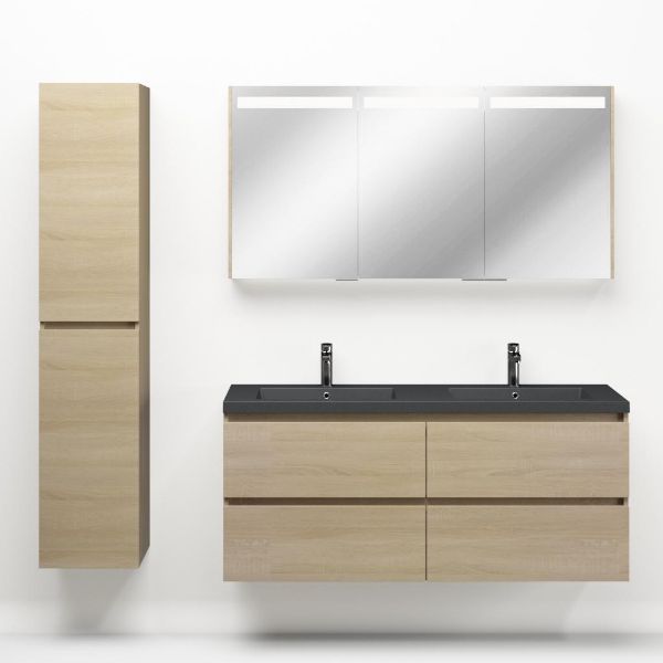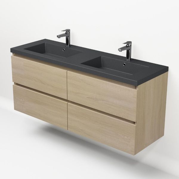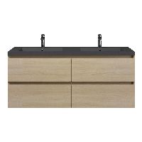| | Bellanti Elena/Esta-Q badmeubel 140x46 4 softclose laden licht eiken greeploos polystone wastafel dubbel mat grijs met 2 kraangaten |