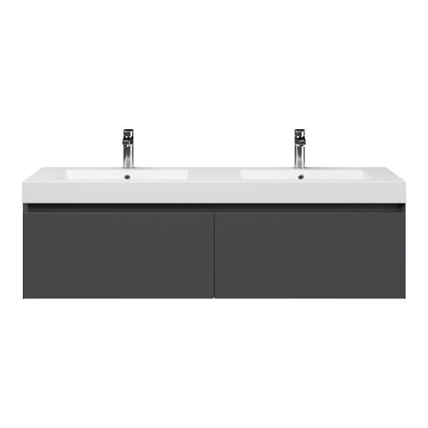 Bellanti Solo/Esta-Q badmeubel 140x46 2 softclose laden antraciet mat greeploos polystone wastafel dubbel mat wit met 2 kraangaten
