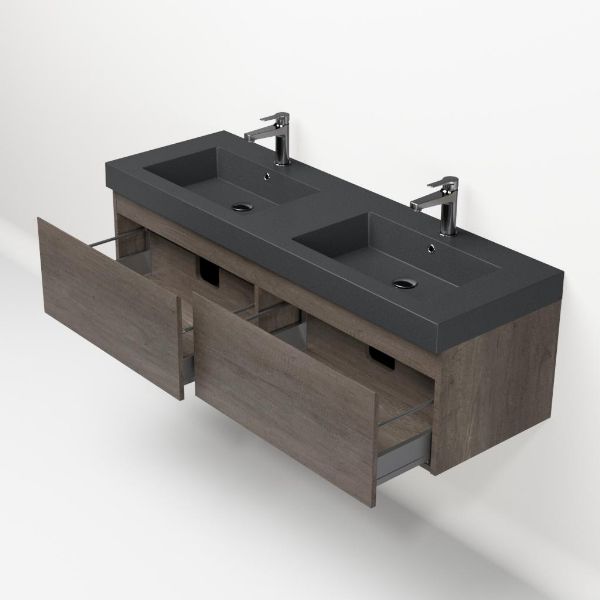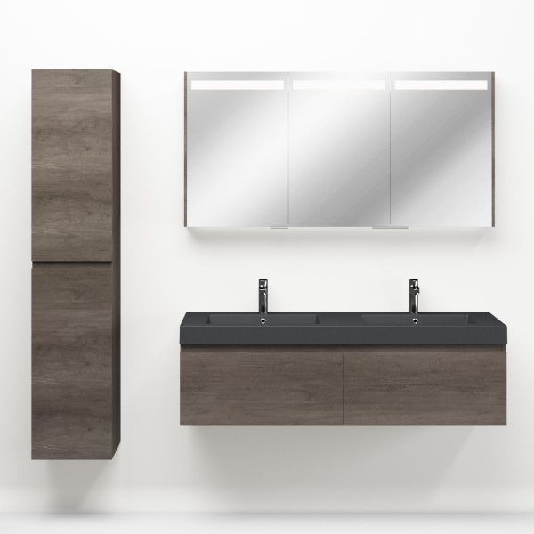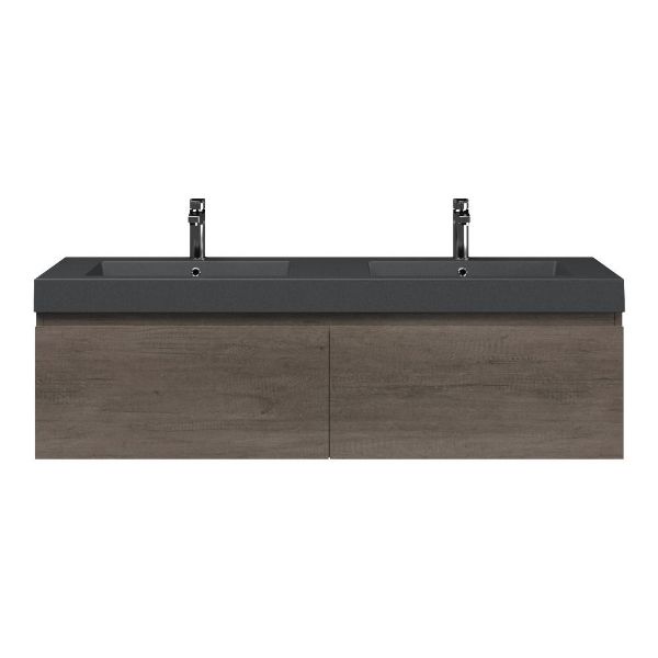 Greeploos badkamermeubel in de kleur olm donker grijs is 140 cm breed. De wastafel is vervaardig in quartz en heeft de kleur grijs mat. Dit badkamermeubel met deze wastafel is leverbaar tussen de 60 cm t/m 160 cm
