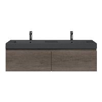 | | Bellanti Solo/Esta-Q badmeubel 140x46 2 softclose laden olm donker grijs greeploos polystone wastafel dubbel mat grijs met 2 kraangaten |