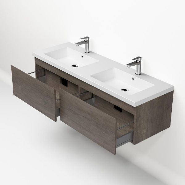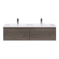 Greeploos badkamermeubel in de kleur olm donker grijs is 140 cm breed.  De wastafel is vervaardig in quartz en heeft de kleur wit mat. Dit badkamermeubel met deze wastafel is leverbaar tussen de 60 cm t/m 160 cm
