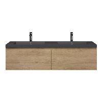 | | Bellanti Solo/Esta-Q badmeubel 140x46 2 softclose laden olm greeploos polystone wastafel dubbel mat grijs met 2 kraangaten |