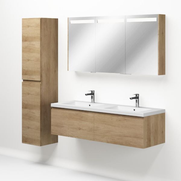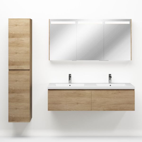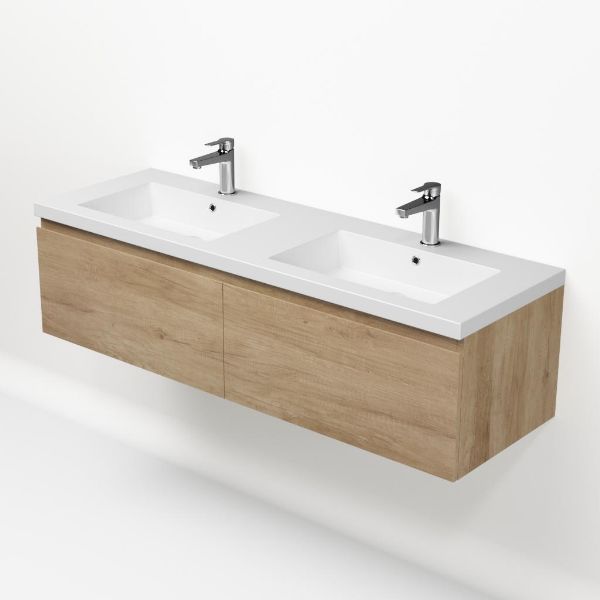 Greeploos badkamermeubel in de kleur olm is 140 cm breed.  De wastafel is vervaardig in quartz en heeft de kleur wit mat. Dit badkamermeubel met deze wastafel is leverbaar tussen de 60 cm t/m 160 cm