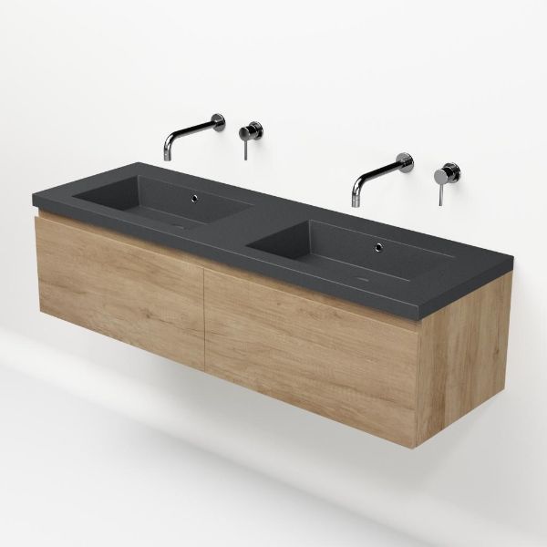 | Bellanti Solo/Esta-Q badmeubel 140x46 2 softclose laden olm greeploos quartz wastafel dubbel mat grijs zonder kraangaten |