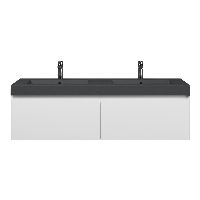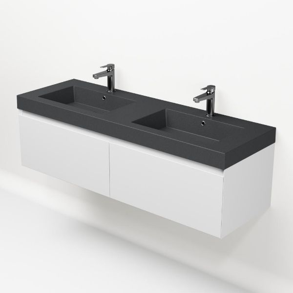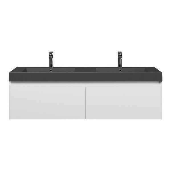 | | Bellanti Solo/Esta-Q badmeubel 140x46 2 softclose laden wit mat greeploos polystone wastafel dubbel mat grijs met 2 kraangaten |