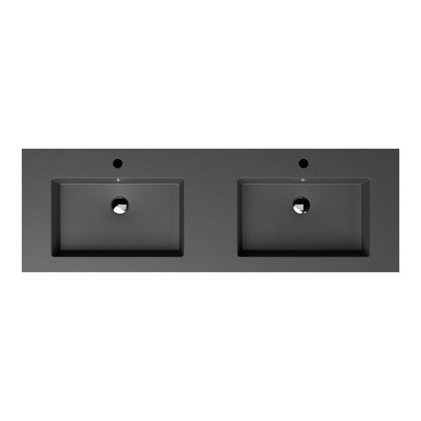 | Bellanti Solo/Esta-Q badmeubel 140x46 2 softclose laden wit mat greeploos polystone wastafel dubbel mat grijs met 2 kraangaten |