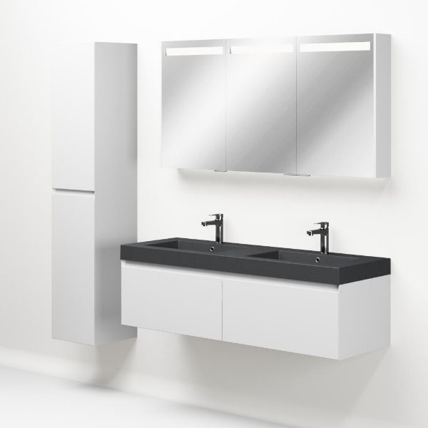 Greeploos badkamermeubel in de kleur wit mat is 140 cm breed. De wastafel is vervaardig in quartz en heeft de kleur grijs mat. Dit badkamermeubel met deze wastafel is leverbaar tussen de 60 cm t/m 160 cm