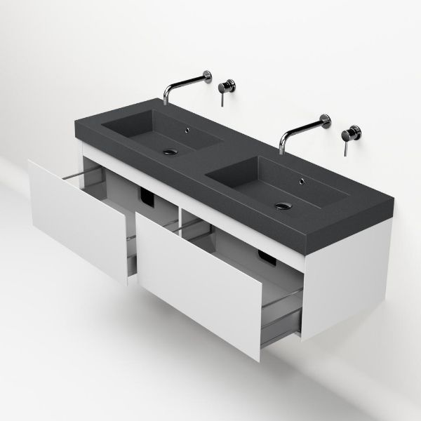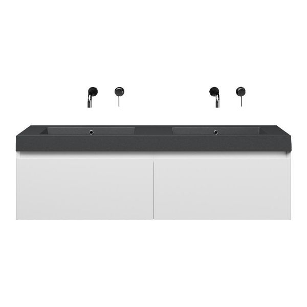 Bellanti Solo/Esta-Q badmeubel 140x46 2 softclose laden wit mat greeploos quartz wastafel dubbel mat grijs zonder kraangaten