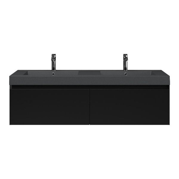 | | Bellanti Solo/Esta-Q badmeubel 140x46 2 softclose laden zwart mat greeploos polystone wastafel dubbel mat grijs met 2 kraangaten |