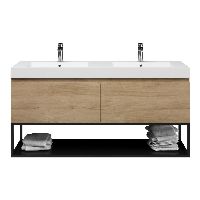 Bellanti Solo/Tela/Esta-Q badmeubel 140x46 2 softclose laden olm greeploos polystone wastafel dubbel mat wit met 2 kraangaten met mat zwart metalen frame