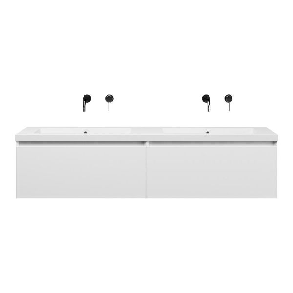 | | Bellanti Solo/Esta badmeubel 160x46 2 softclose laden mat wit greeploos polystone dubbele wastafel wit zonder kraangaten |