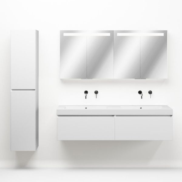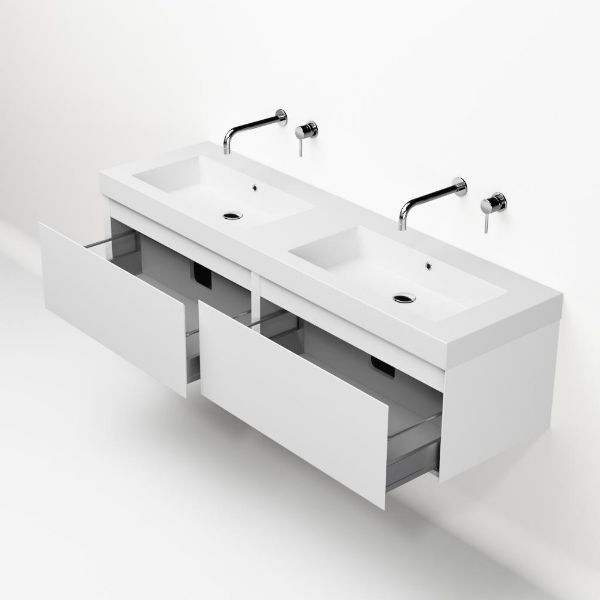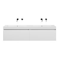 Greeploos badkamermeubel in de kleur wit mat is 160 cm breed.  De wastafel is vervaardig in polystone en heeft de kleur wit. Dit badkamermeubel met deze wastafel is leverbaar tussen de 60 cm t/m 160 cm