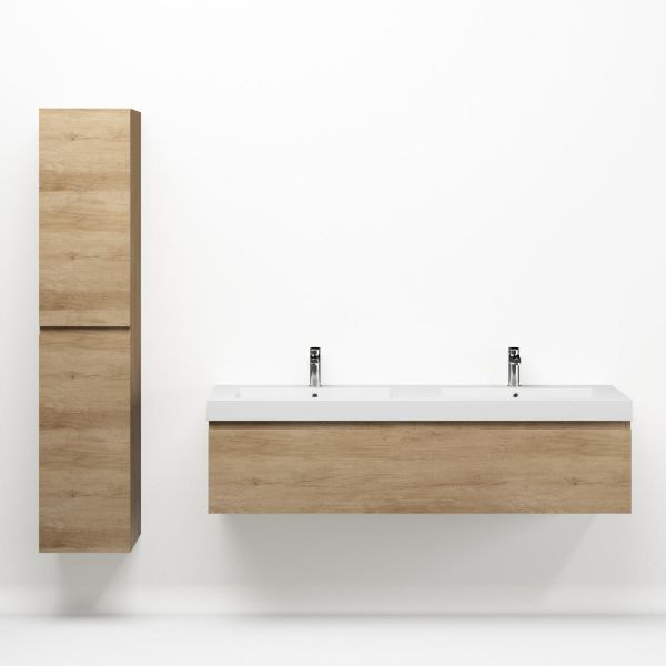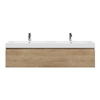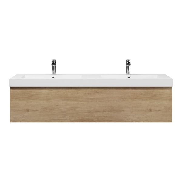 Greeploos badkamermeubel in de kleur olm is 160 cm breed.  De wastafel is vervaardig in polystone en heeft de kleur wit. Dit badkamermeubel met deze wastafel is leverbaar tussen de 60 cm t/m 160 cm