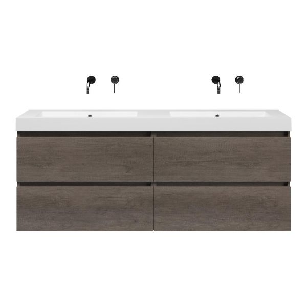 Bellanti Elena/Esta-Q badmeubel 160x46 4 softclose laden olm donker grijs greeploos quartz dubbele wastafel mat wit zonder kraangaten