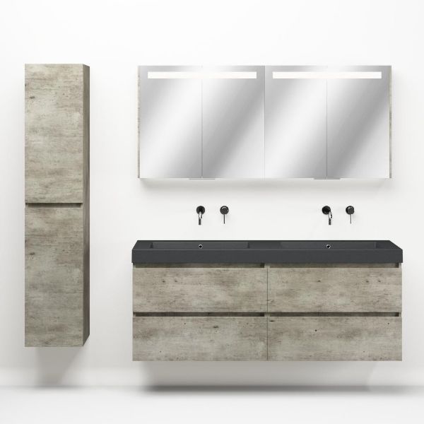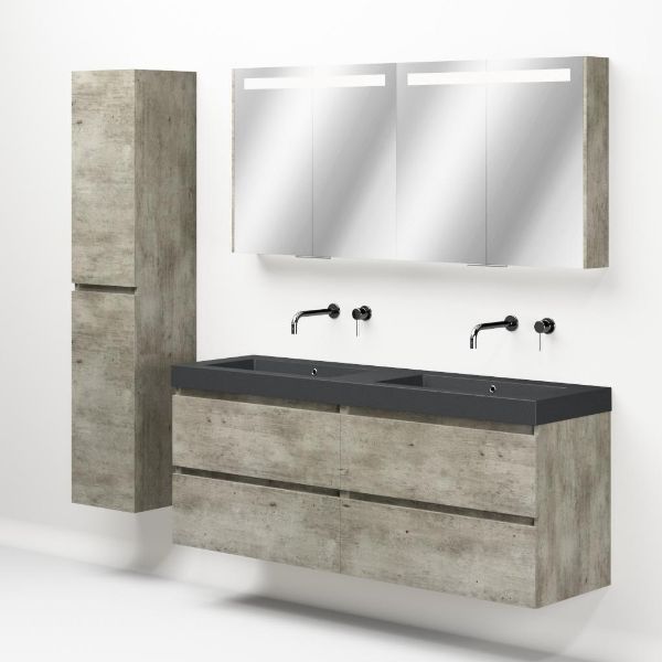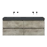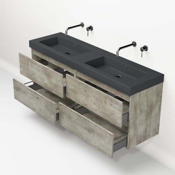 Bellanti Elena/Esta-Q badmeubel 160x46 4 softclose laden steigerhout look grijs greeploos quartz dubbele wastafel mat grijs zonder kraangaten