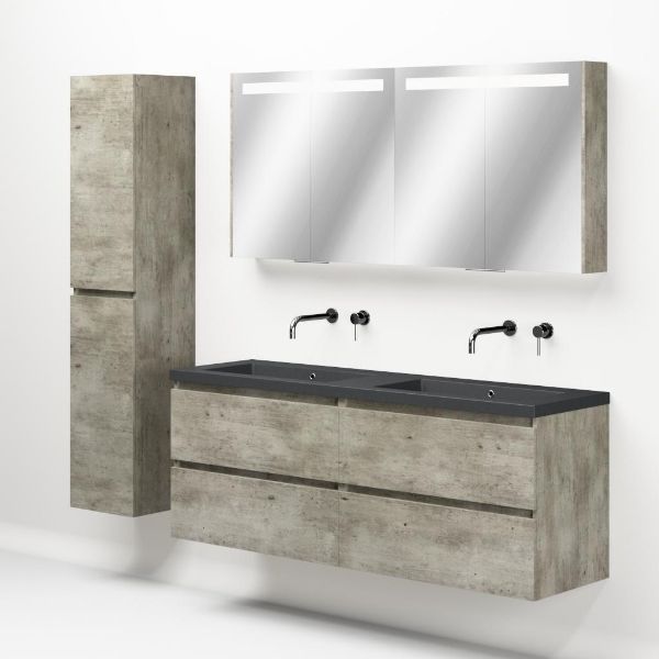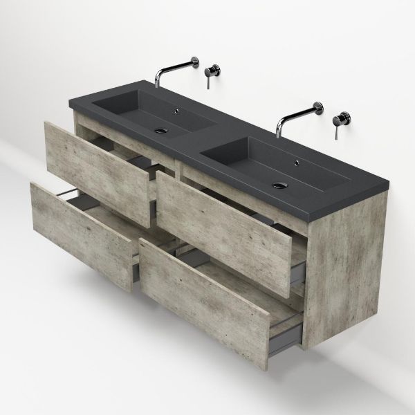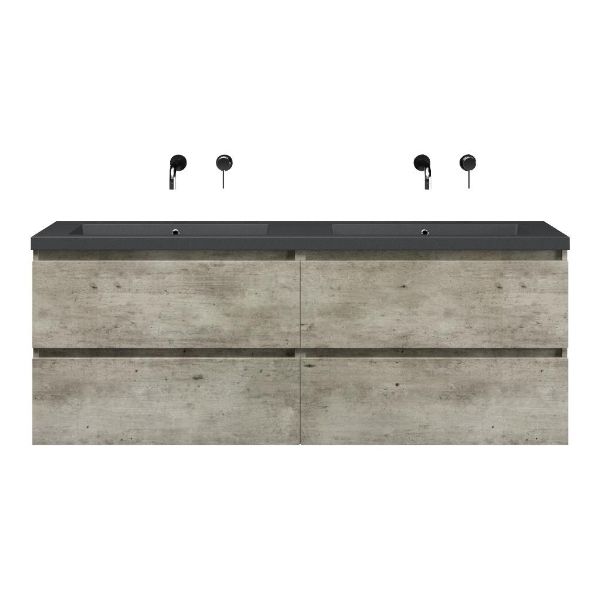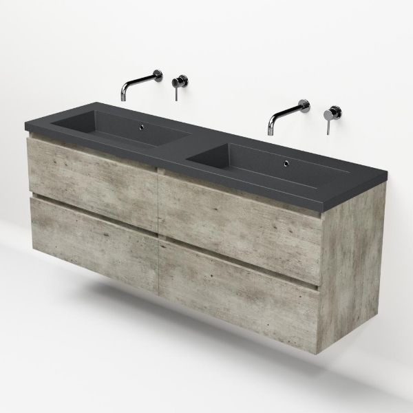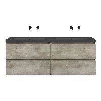 | | Bellanti Elena/Esta-Q badmeubel 160x46 4 softclose laden steigerhout look grijs greeploos quartz dubbele wastafel mat grijs zonder kraangaten |